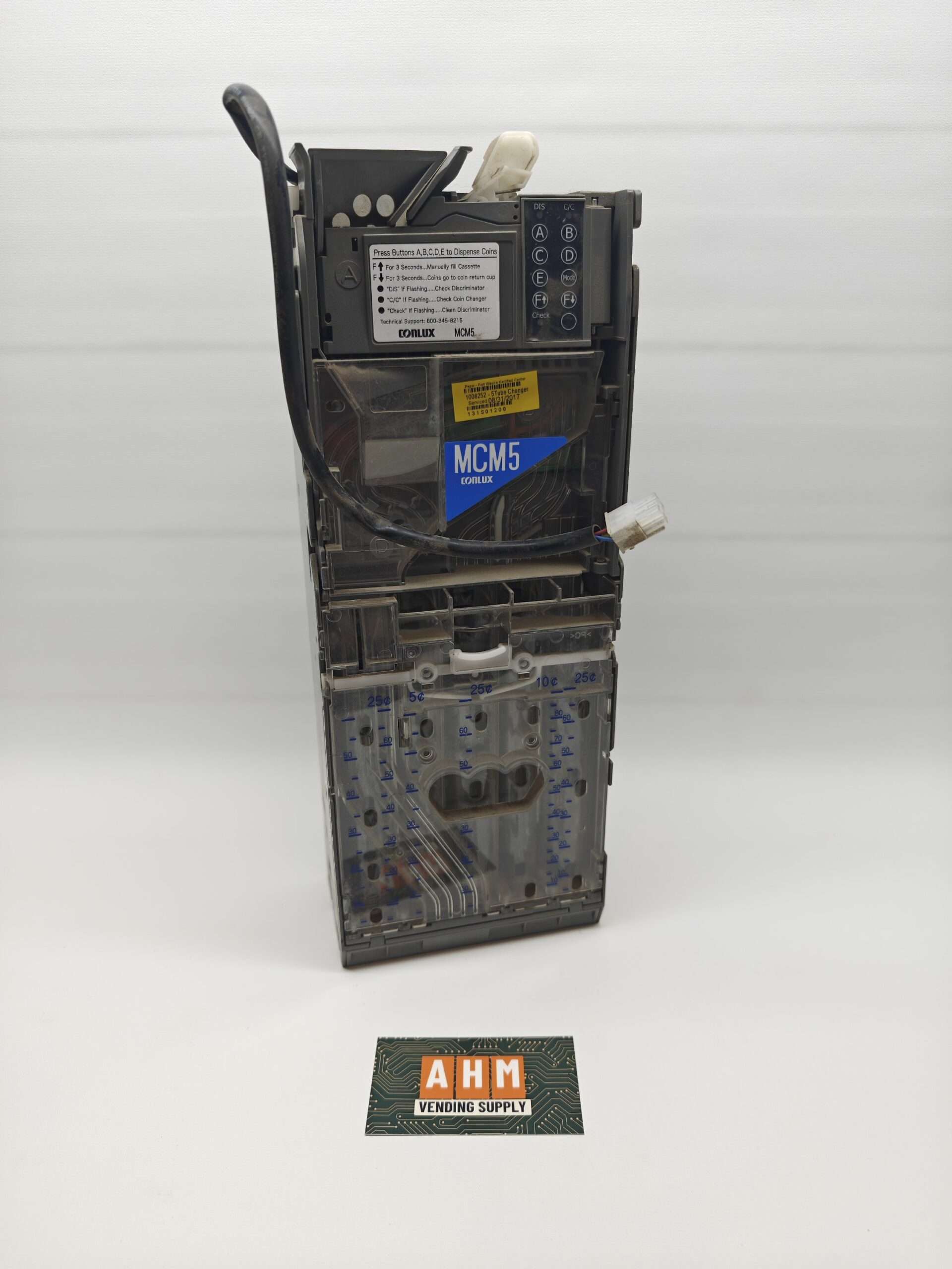 This Conlux MCM5 coin changer has been fully tested and verified working in MDB vending machine environments. It’s a reliable changer from the Conlux M-series, offering efficient coin acceptance, smooth payout, and simple maintenance for everyday vending use.