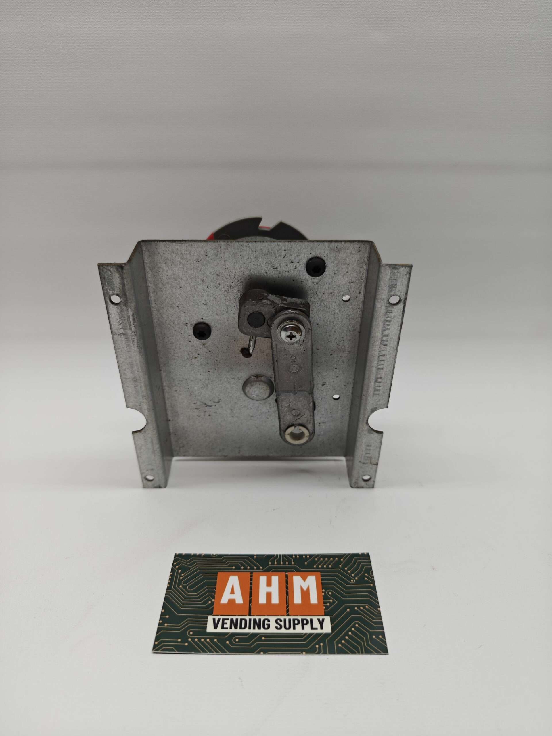 This Dixie-Narco double column vend motor has been machine-tested and verified working in a 501E soda machine. It controls the vending rotation for a dual-column selection and is a commonly replaced component in Dixie-Narco beverage machines.